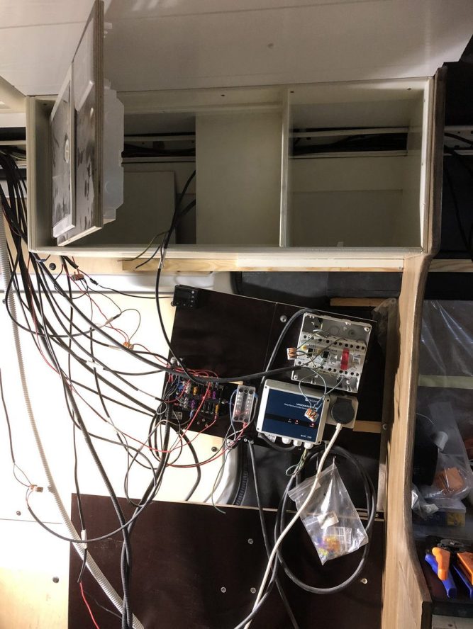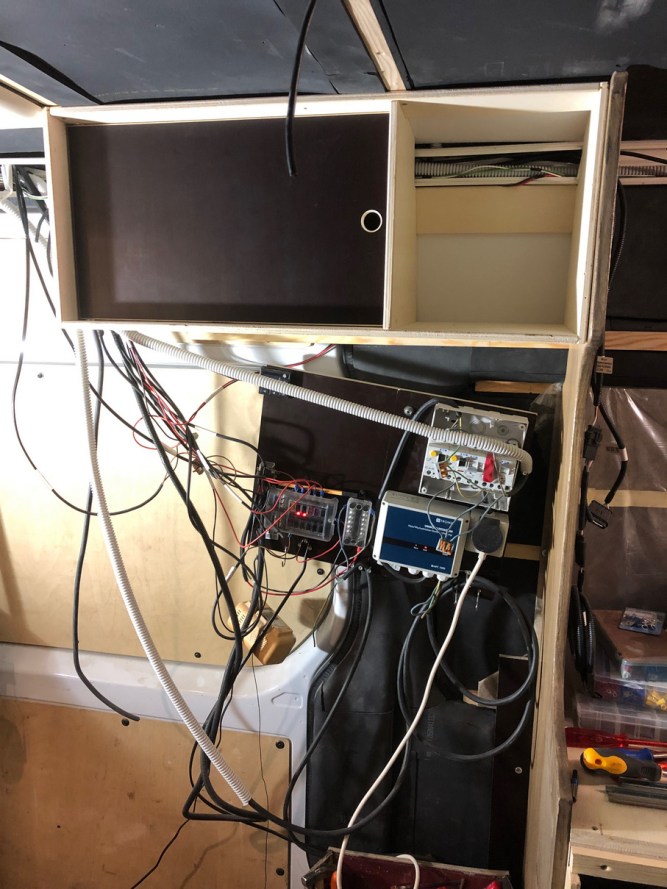 Der Schaltschrank war gleich links neben der Schiebetüre geplant, da darunter unsere Wohnraumbatterie verbaut war.