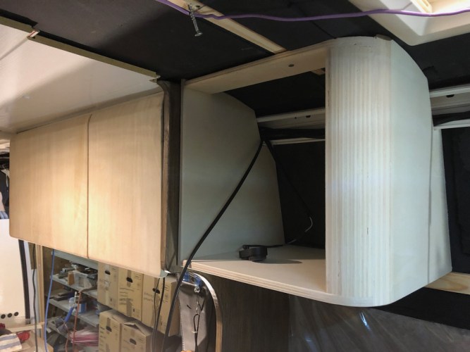 Gebaut habe ich aus Gewichtsgründen die Schränke aus 12 mm Pappelsperrholz, die Türen aus 18 mm Paulownia.