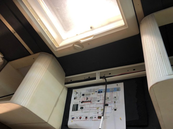 Unsere nächste Aufgabe wird die Montage des Kühlschrankverbaus/Kleiderschrankes und der Sitzbänke sein.