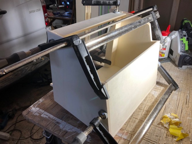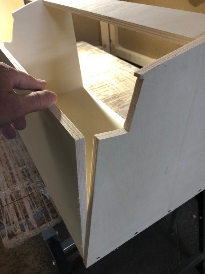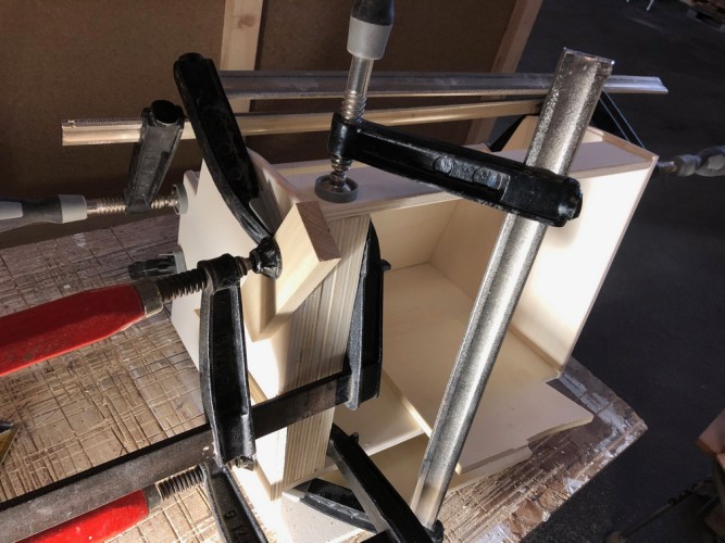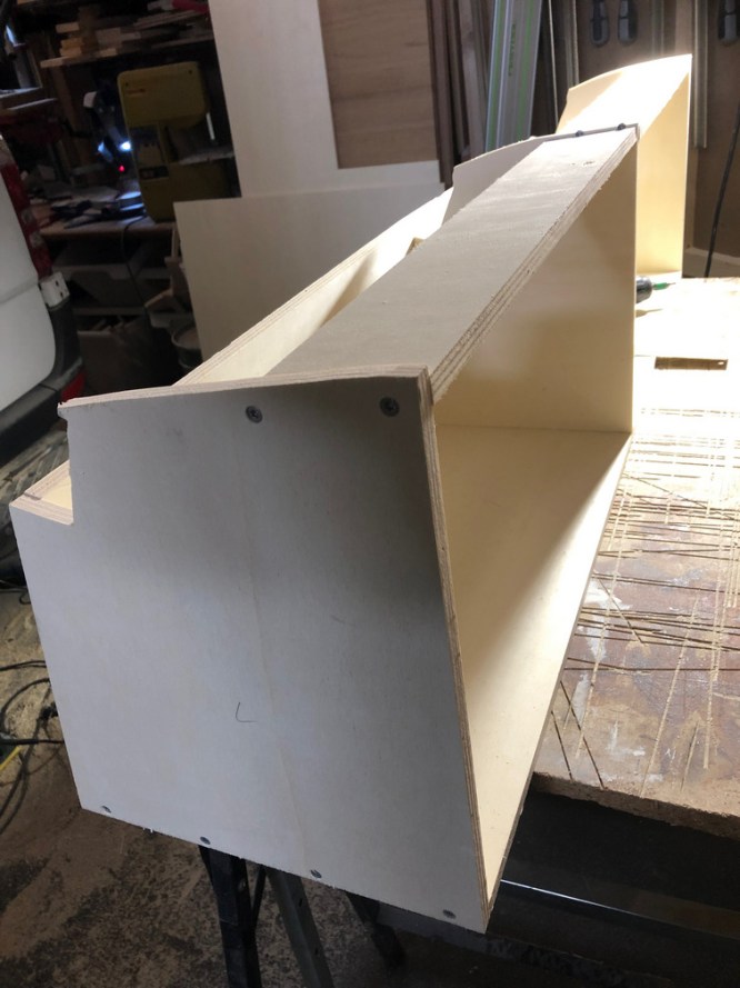 Gebaut habe ich aus Gewichtsgründen die Schränke aus 12 mm Pappelsperrholz, die Türen aus 18 mm Paulownia.