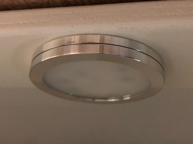 Um in den Hängeschränken alles ohne großer Sucherei zu finden, haben wir in jeden Abschnitt eine LED-Schrankleuchten eingebaut,