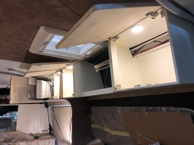 Unsere nächste Aufgabe wird die Montage des Kühlschrankverbaus/Kleiderschrankes und der Sitzbänke sein.