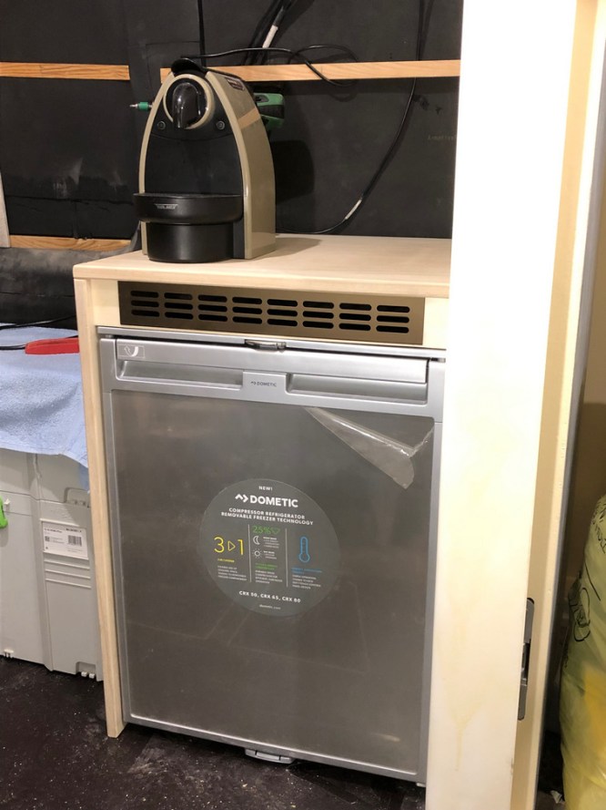 Fahrerseitig haben wir den „Dometic CoolMatic CRX-80“ Kompressorkühlschrank verbaut.