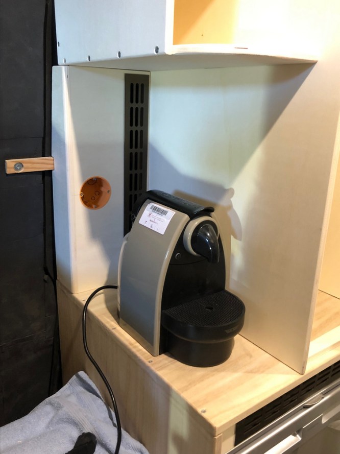 Im Bereich der Kaffeemaschine haben wir einen Teil unserer Küchenarbeitsplatte verbaut.
