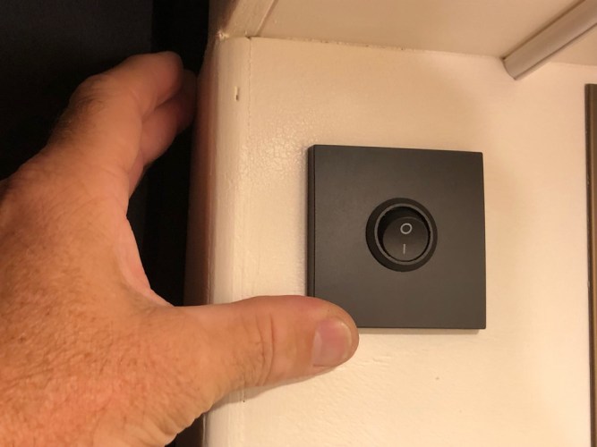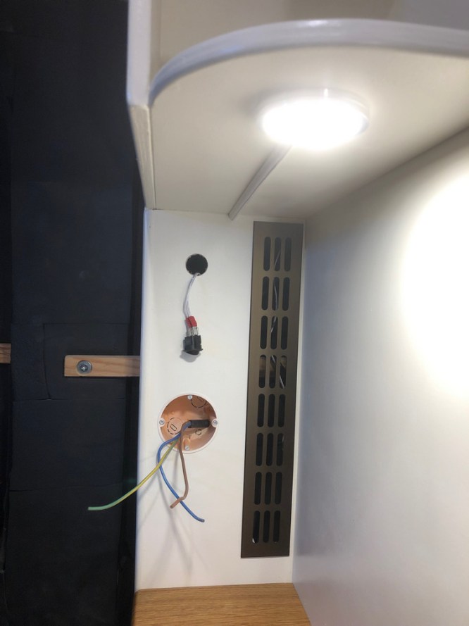 Die Misere der durchgeführten Bohrung für den Schalter zu später Stunde mussten wir improvisierend durch eine Schalterwippe reparieren.