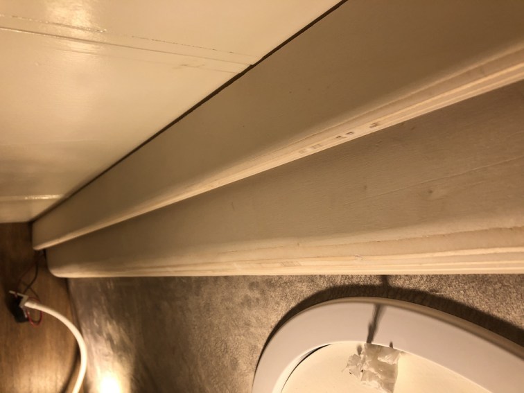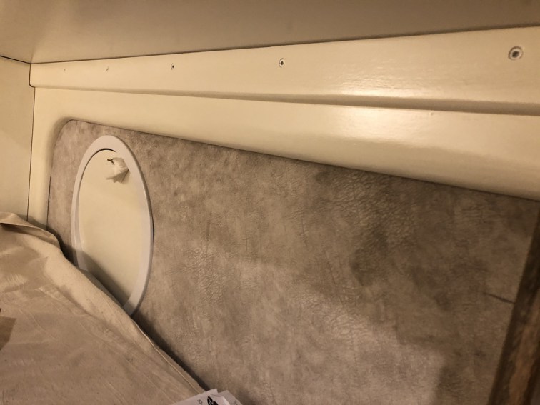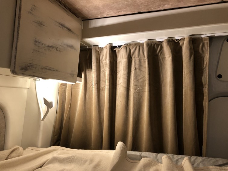 Zu guter Letzt wird eine kleine Vorhangschiene montiert, die einerseits, wie üblich, den Vorhang führt, aber auch hecktürseitig das Klettband für das Moskitonetz aufnimmt.