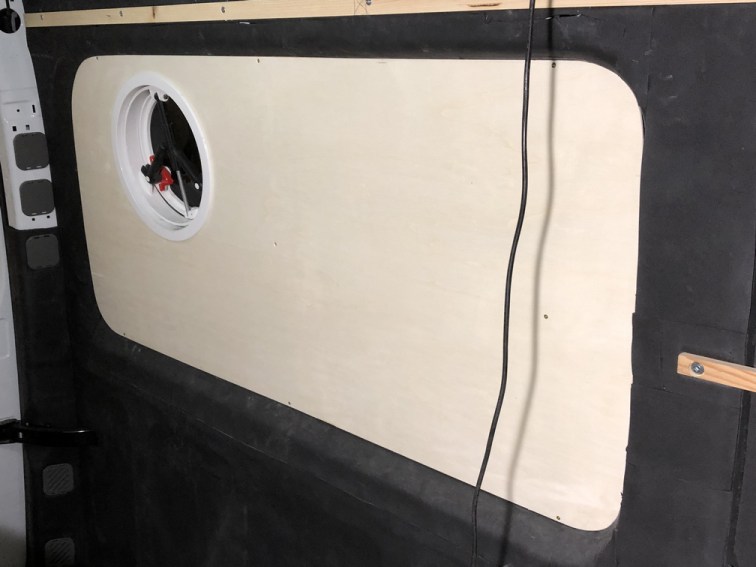 Die Grundplatte, bestehend aus 6 mm Pappelsperrholz, wird an den Vertiefungen im Schlafbereich eingepasst. Da wir im Kastenwagen quer schlafen, erhalten wir dadurch ca. 9 cm mehr in der Breite.