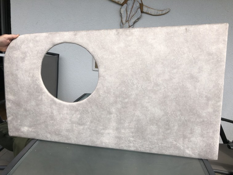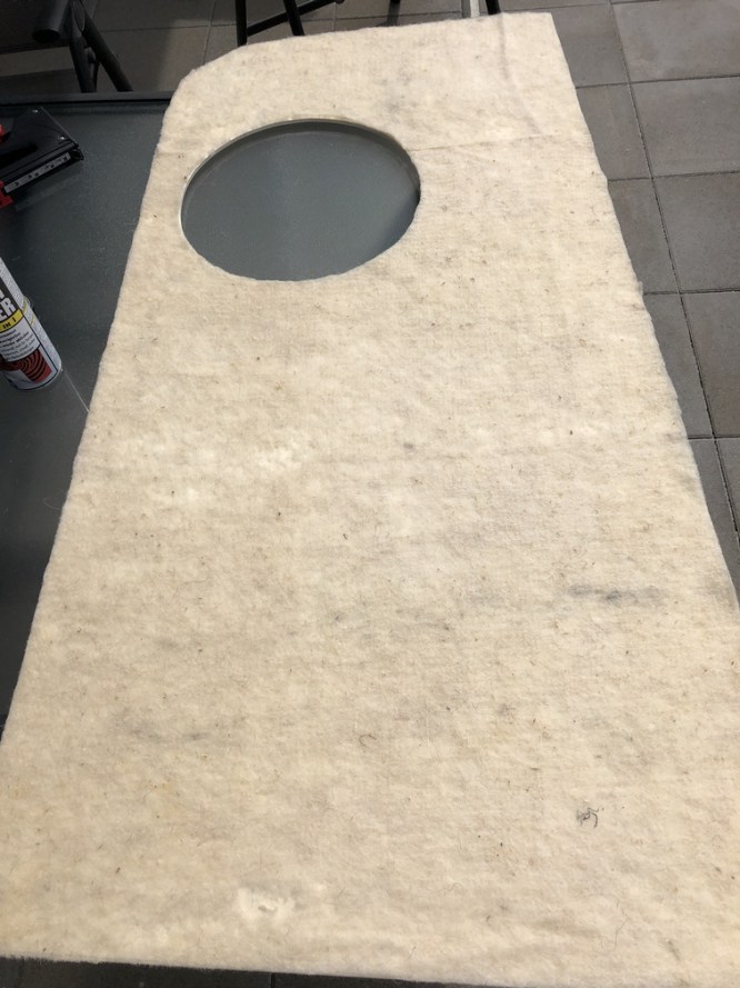 Um nachts nicht mit dem Kopf bzw. den Füßen an einer harten, glatten Platte anzustoßen, werden wir diese Verkleidung mit Polstervlies „unterfüttern“. Dadurch erhalten wir auch hier einen weichen, gepolsterten Look.