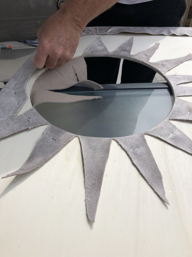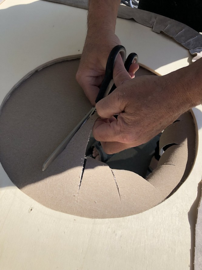 Die Ausnehmung für das Bullauge wird eingeschnitten. Durch die Qualität des Stoffes lässt sich dieser hervorragend verarbeiten.