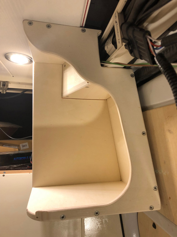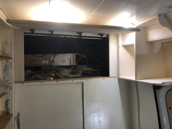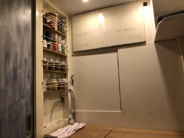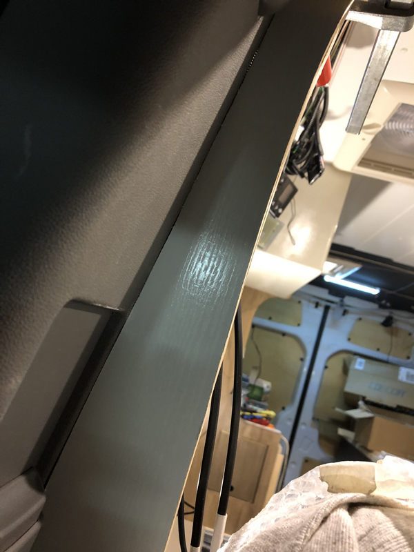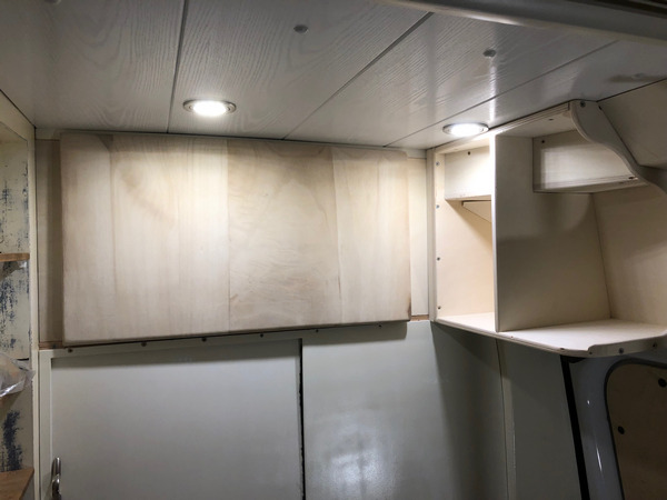 an denen nun eine Platte fahrerkabinenseitig die Sicht auf den Wohnbereich verschließt.