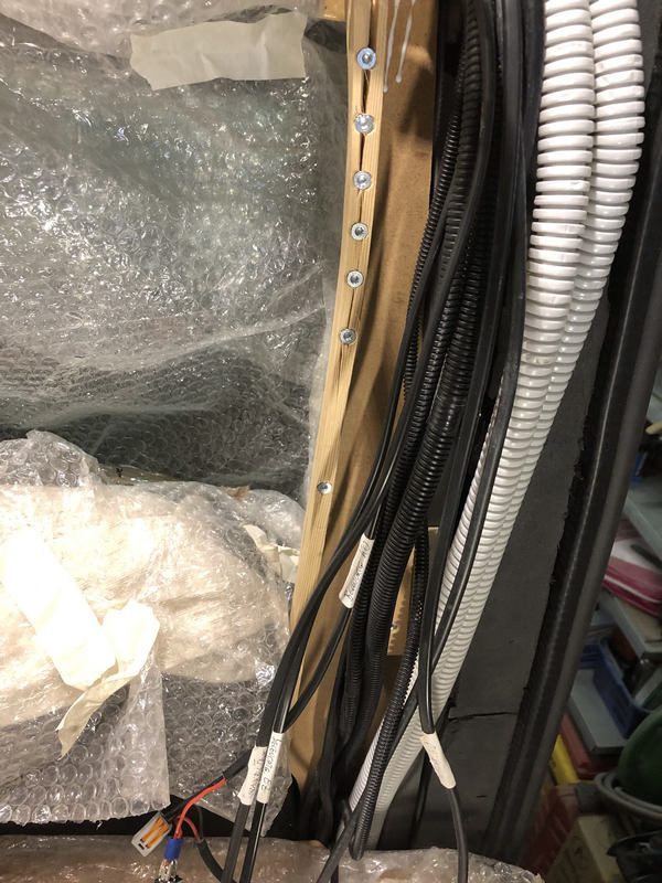 Dann wurden alle Kabel hinter der Verkleidung sortiert, beschriftet und gesichert.