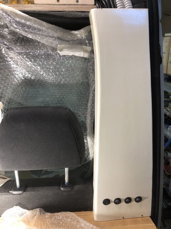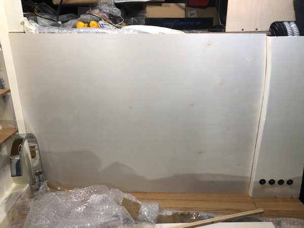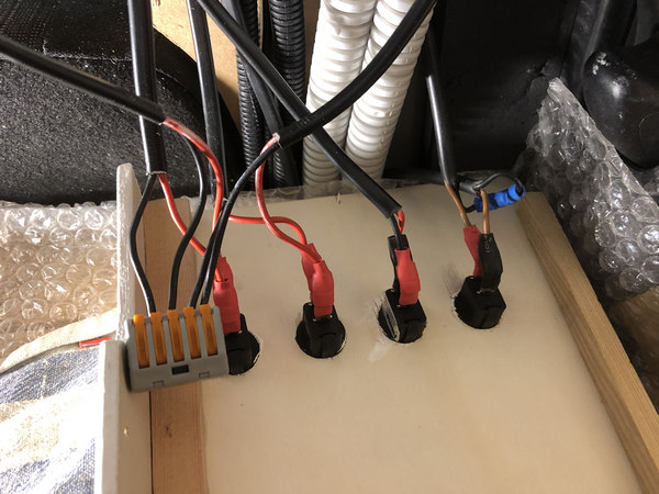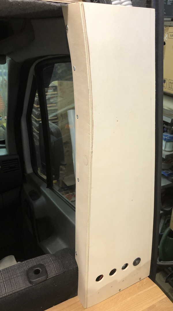 Zum Abschluss bekam der „Kabelschacht“ noch eine Pappelsperrholzverkleidung mit der gleichen Stärke zum Wohnbereich, in dem die Ausnehmungen für die Schalter gebohrt wurden.