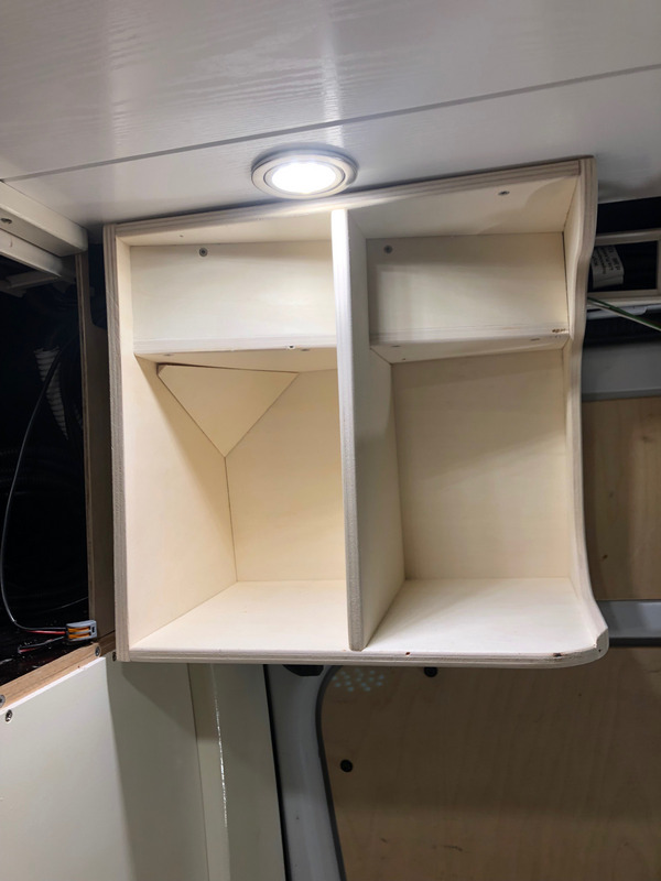 Im Ablagefach haben wir eine LED-Schrankleuchte eingebaut, welche diesmal über einen eigenen Schalter angesteuert wird.