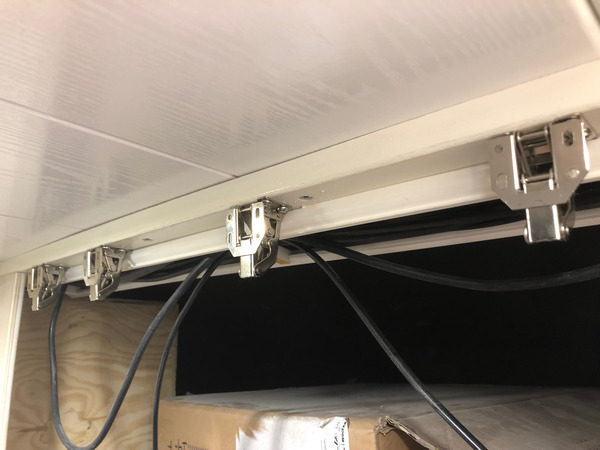 Der Bereich der Ablage über der Fahrerkabine soll mit 4 Stk. Aufschraubschnieren und einer Front verschlossen werden.