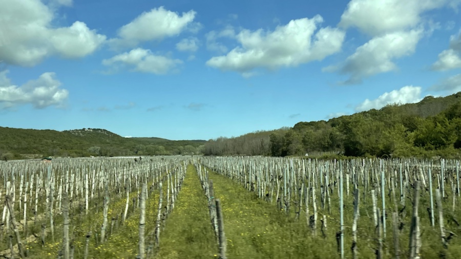 Bei der Anfahrt auf Vrbnik sehen wir unendliche Weinfelder mit den bekannten Trauben, die für den Vrbnik-Wein, dem Slatina verantwortlich zeichnen.