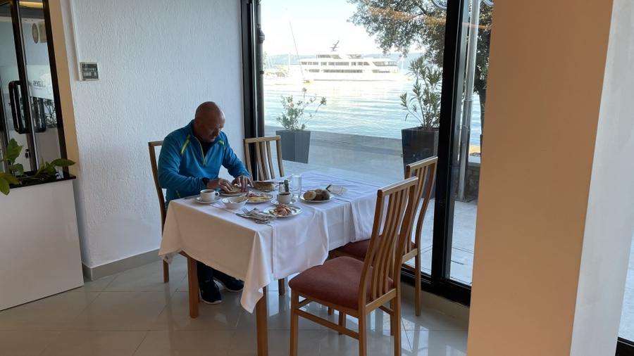 Nächsten Morgen geht es, wie geplant, nach dem Aufräumen unserer Villa zum Frühstücken und genießen anschließend noch die ersten Sonnenstrahlen dieses Tages.