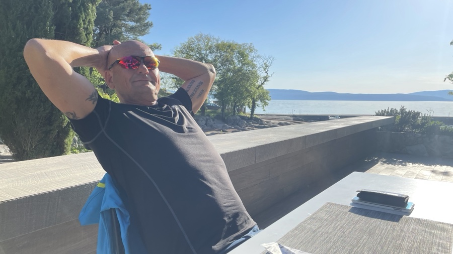Werner lässt es sich nicht nehmen, die Wassertemperatur zu testen und begibt sich ins 14-15° kalte Wasser. Als bekennender Warmduscher zolle ich ihm vollen Respekt.
