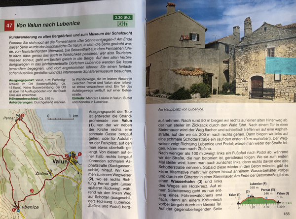 Aufgrund der hervorragenden Wegbeschreibung im Buch „Cres und Losinj“ Reiseführer für Kenner des Verlages von Momentum war der Einstieg schnell gefunden. Das Auto am nächstgelegenen Parkplatz am Ortsanfang von Valun geparkt, Trekkingschuhe geschnürt, Rucksack umgeschnallt und das GPS-Gerät gestartet.