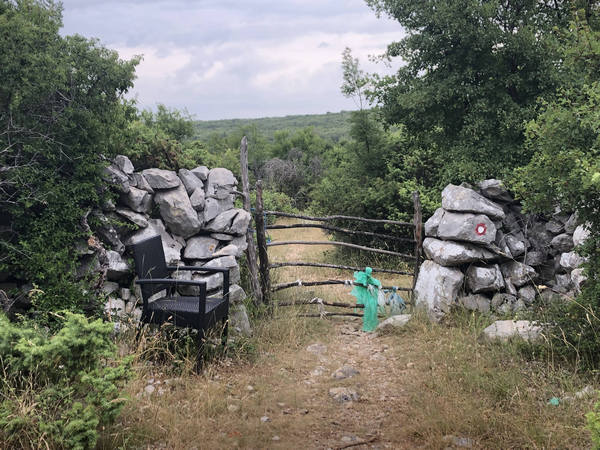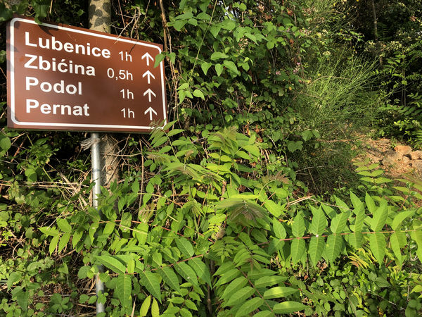 Im Bereich von Zbicina erreiche ich für eine kurze Zeit eine Verbindungsstraße, die nach Pernat führt. Dann geht es wieder über ziemlich verwachsene Wege Richtung Lubenice. Die Markierung ist sehr einfach gehalten und besteht entweder nur aus einem „L“ oder man findet auf Steinen, Bäumen oder ähnliches „Lu“.
