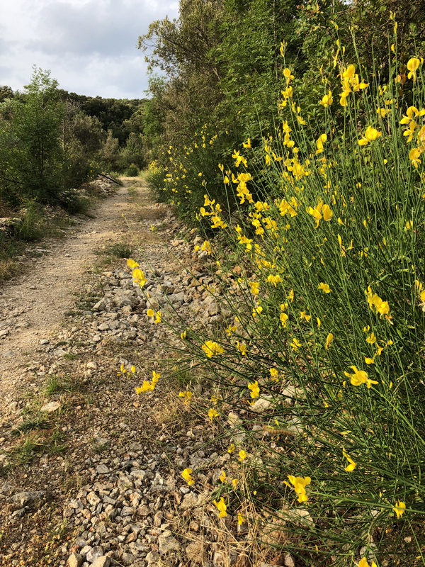 Vorbei am blühenden Ginster und sonstigen farbenprächtigen Pflanzen gewinne ich rasch an Höhe.