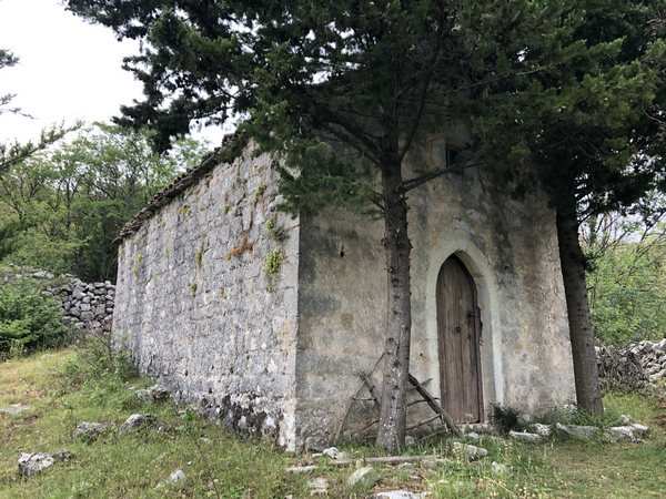 Noch im Staunen über die Bauleistung der kroatischen Bauern erscheint plötzlich vor mir aus dem Nichts, mitten im Wald, eine uralte, noch sehr gut erhaltene Kapelle.