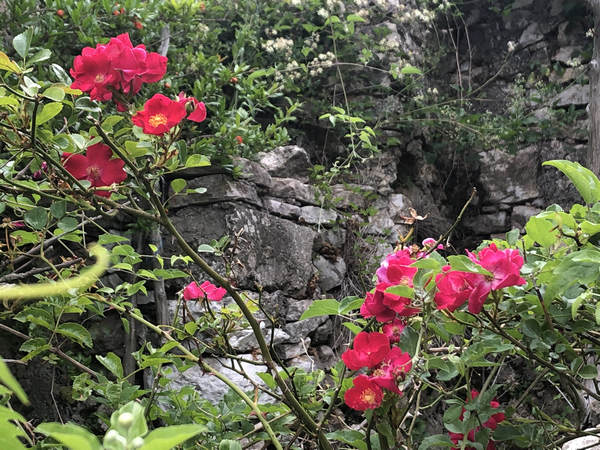 Vorbei an blühenden Pflanzen, stacheligen, wunderschön anzusehenden Disteln und riesigen von Spinnen „gewobenen“ Rädern geht es fast ausschließlich zwischen Steinmauern entlang.