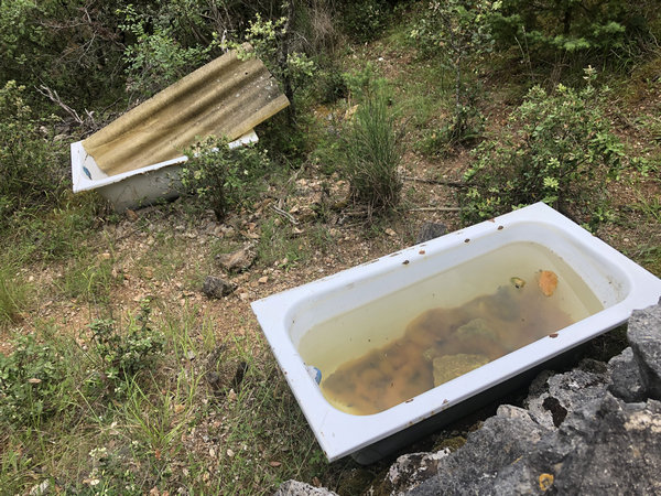 Z.B. eine Badewanne als Schafstränke, ein alter PKW als Futterstelle, eine alte WC-Muschel mit Deckel als Sitzmöglichkeit, usw.