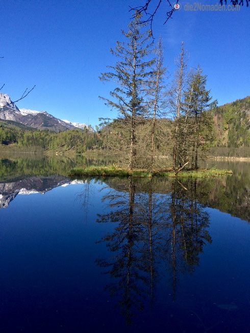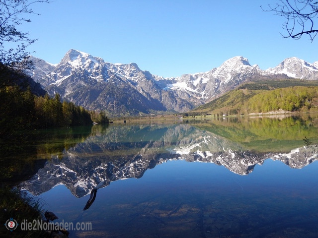 Für Fotografen immer wieder ein besonderes Highlight. Von der gegenüberliegenden Seite lockt uns der Ameisberg, der schön öfters auf unserer to-do-Liste stand. Wir marschieren am Seeufer entlang und erreichen bald das Ende des Sees. Noch ein Blick zurück, 1-2-3 Fotos geschossen und wir machen uns auf den Weg entlang der glasklaren Alm, wo sich die Forellen tummeln, in Richtung Bahnhof von Grünau.