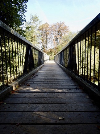 Vom Bahnhof aus starten wir Richtung Kirche zur Alm und erreichen erst mal eine Steg, über dem man in das Ortszentrum, aber auch zu den Almwirtinnen kommt. Da wir noch nicht hungrig sind, nehmen wir den Flösserweg, dem wir nun kontinuierlich mit mehr oder weniger weitem Abstand zur Alm folgen werden.