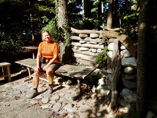 Vor der Sportanlage Scharnstein gibt es einen Aktiv-Rastplatz, speziell für Kinder, aber uns reizen mehr einige einladende Tische und Bänke am Rand des Trainingsplatzes, wo wir unsere mitgebrachte Jause konsumieren.