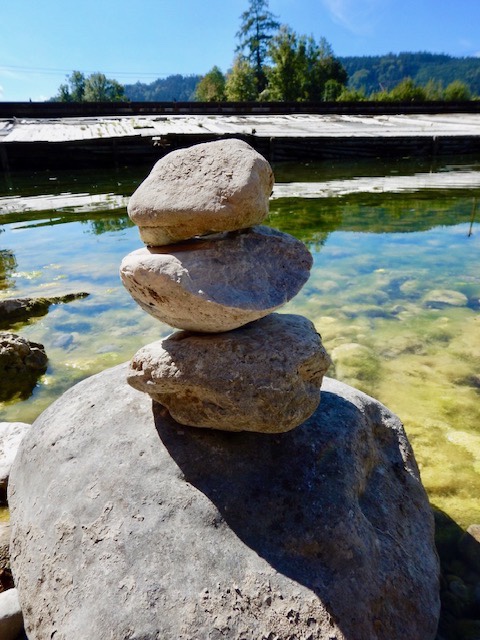 Das kristallklare Wasser der beiden Bäche ist wunderschön anzusehen. Da diese Uferseite jedoch noch im Schatten liegt, halten wir uns nicht lange auf.