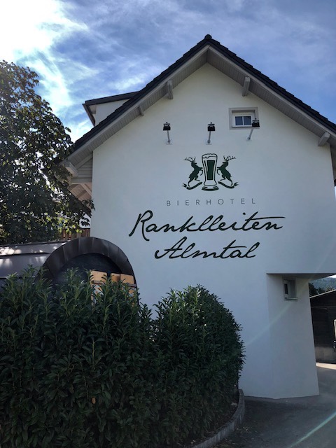 Noch einmal queren wir die Alm. Ab hier geht es endlich wieder entlang des Baches Richtung Pettenbach. Bei Bierheurigen Ranklleithen sehen wir das gleichnamige E-Werk. Leider ist eine Besichtigung nicht möglich und so bleiben nur die Aufnahmen von außen.