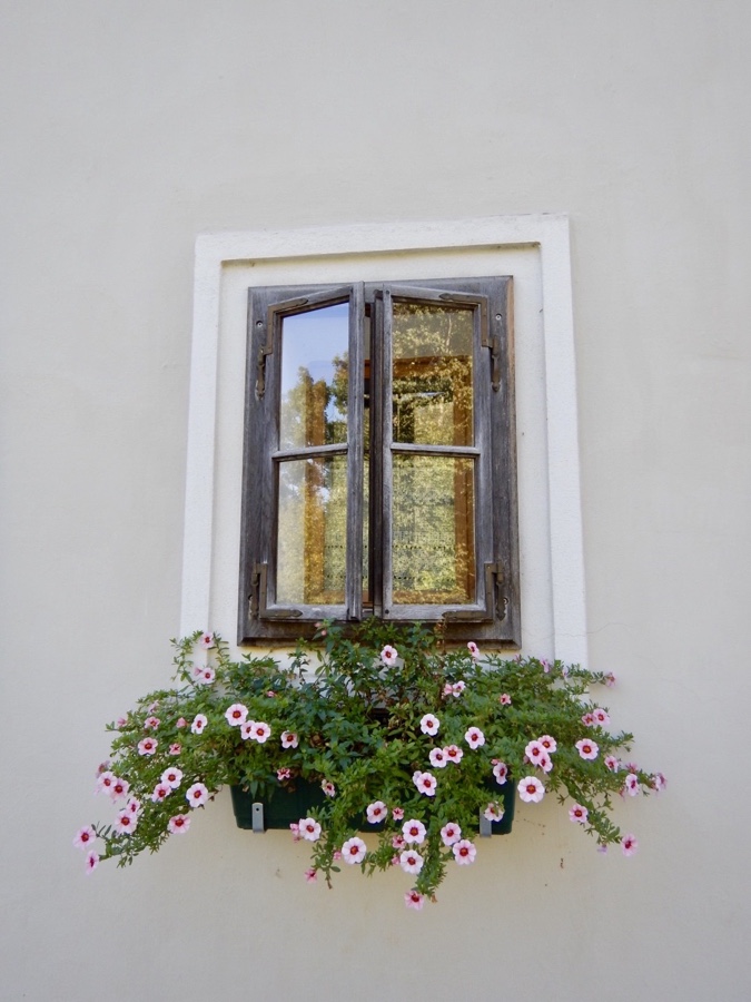 Zufrieden und voller Elan geht es nun vorbei an wunderschön erhaltenen Höfen, stilvoll blumendekorierten Gebäuden und schlichten alten Heustadeln.