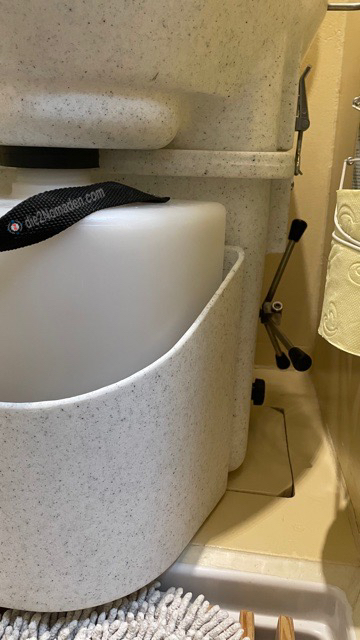 Wir benutzen 100% biologisch abbaubares, 3-lagiges Klopapier, welches wir in den Feststoffbehälter geben. Dadurch wird die vorhandene Feuchtigkeit noch schneller gebunden.