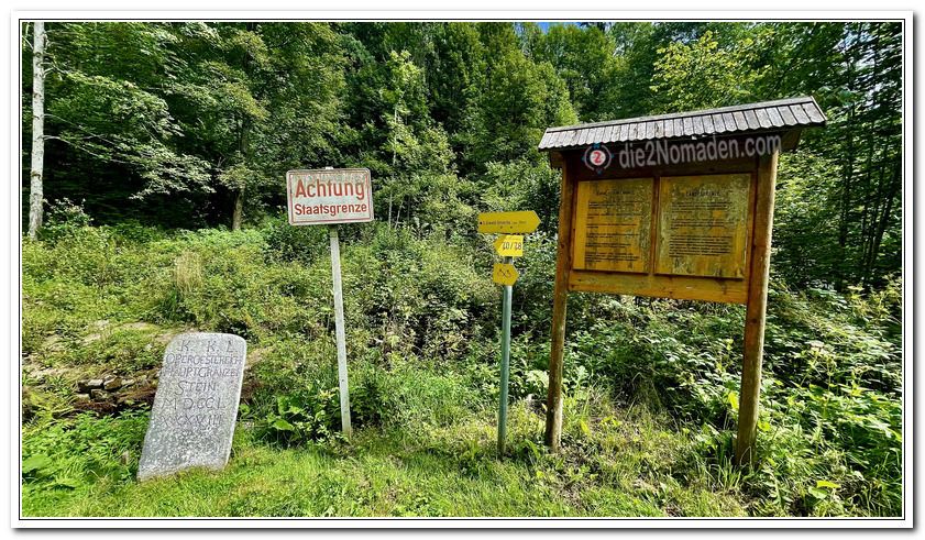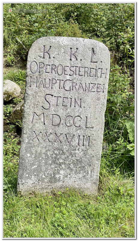 Unter Maria-Theresia wurden die Grenzen vermessen und hier treffen wir auf den historische Grenzstein mit der Inschrift: „KKL-Operösterreich-Haupt. Granzen-Stein-MDCCL-XXXVII“ (laut gastroszene.at = Kaiserlich-König-Licher (Königreich Böhmen)/Oberösterreich/Hauptgrenzstein/1788).