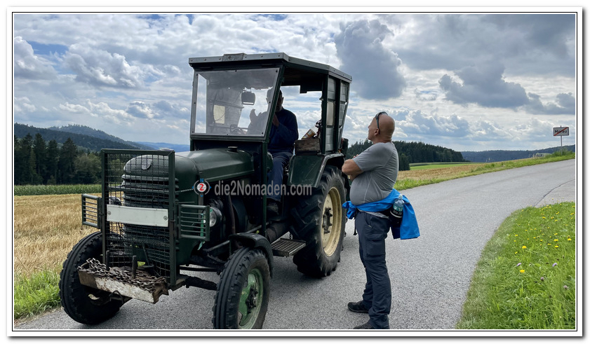 In Morau, ein kleiner Ort nahe der Grenze, treffen wir einen älteren Herrn auf einem 60 Jahre alte Steyr Traktor, der unglaubliche Geschichten aus seiner Jugend und den ehemaligen Ortschaften in dieser Gegend erzählte.