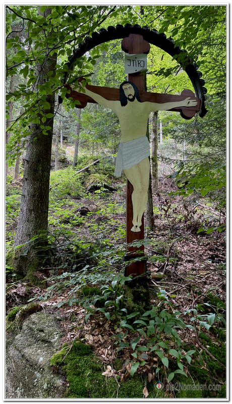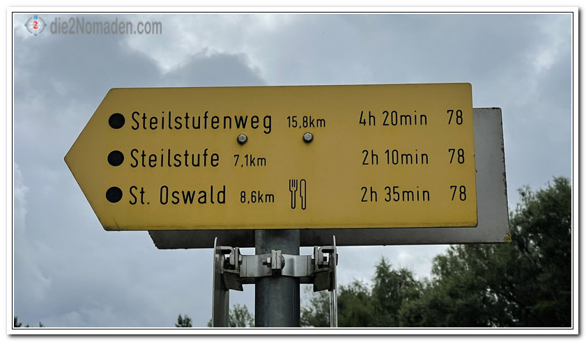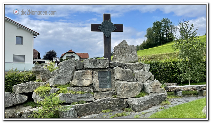 Nur schwer konnten wir uns von den Geschichten losreißen und wanderten, ab nun immer bergab, weiter nach St. Oswald. Das Denkmal wurde zum Gedenken an den Ort Deutsch Reichenau, welcher um 1957 durch ein tschechisches Sprengkommando zerstört wurde, gebaut.