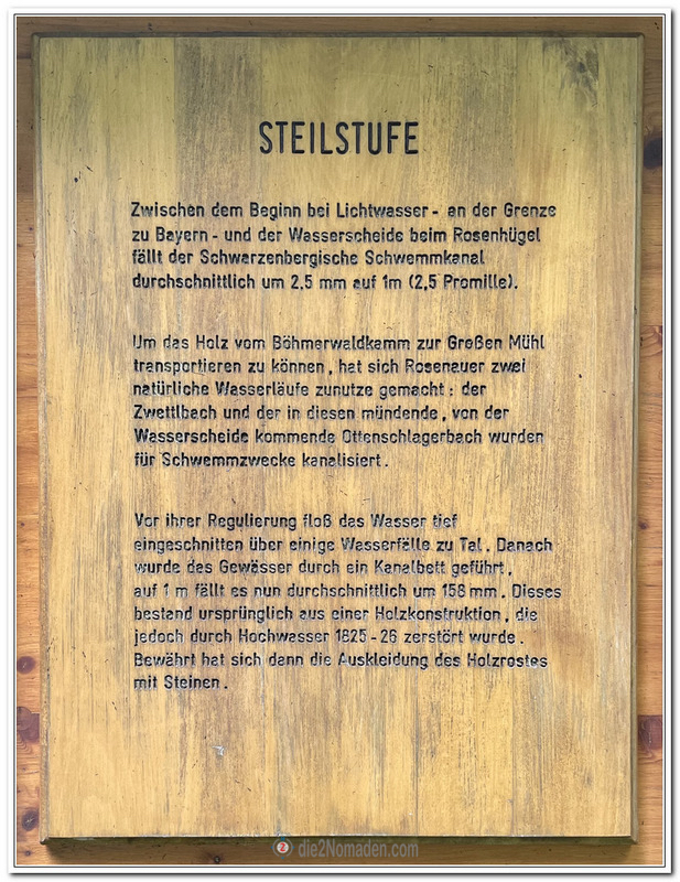 Der hier vorhandene Teil des Schwarzenberg’schen Schwemmkanals, die Steilstufen, ist der beeindruckendste Abschnitt des Kanals.