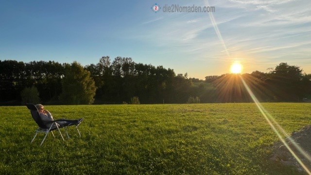 Den restlichen Nachmittag verbringen wir beim Sonnenbaden vor unserem Bus, bis um ca. 19 Uhr die Sonne hinterm Horizont verschwindet und es mit einem Schlag um mind. 10 Grad kühler wird.