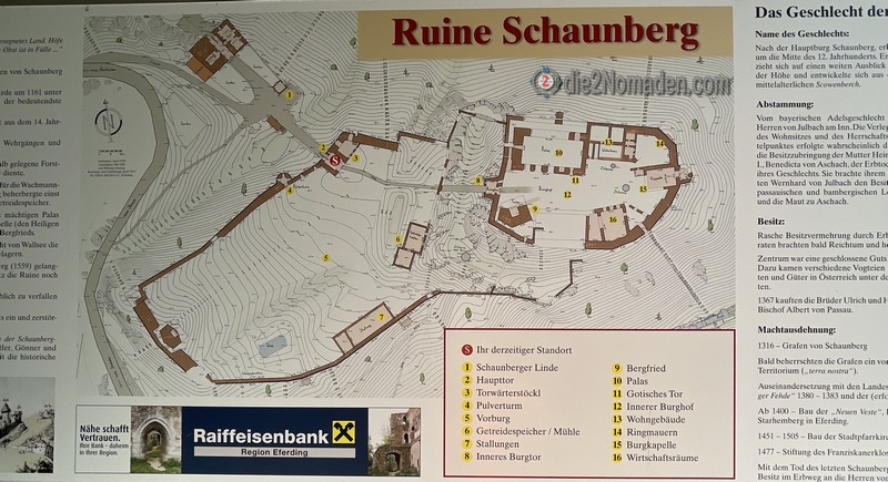 Bei der Heimfahrt von unserem Kurzurlaub besuchten und erkundeten wir noch die Überreste der damals flächenmäßig größte Burganlage Oberösterreichs, die Ruine Schaunberg.