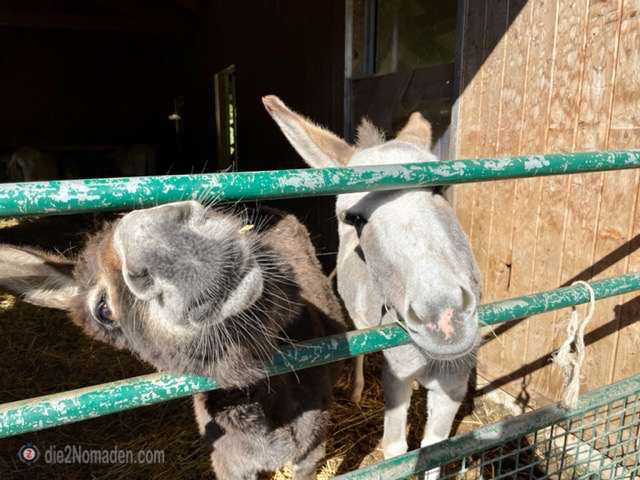 Es gibt viel zu sehen – von Pferden, Ponys, neugierigen bettelnden Eseln, kleinen grunzenden Schweinchen, Stachelschweinen, Ziegen, Alpakas mit lustigen Frisuren, Schafen und Yaks mit ihren Kälbern (Anmerkung: ich vermute mal, dass das welche waren, schauen aus wie eine Mischung aus Kühen und Zottelbären).
