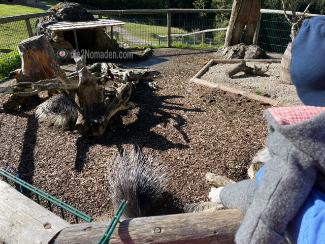 Auch der eingezäunte Spielplatz für die Kleinen wird getestet – im Rahmen unserer Baby-Möglichkeiten – und die Meerschweinchen und kleinen Hasen werden bestaunt, bevor wir uns wieder auf den Rückweg zum Parkplatz machen.