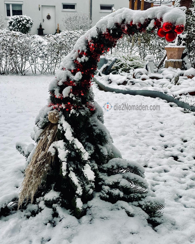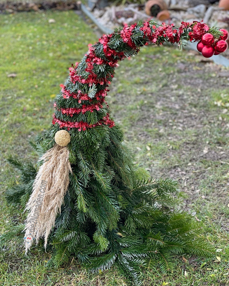 Interessant, was man so aus einem Ast, einigen Reisigzweigen, Schilfwedeln, Weihnachtskugeln und ein wenig Draht so basteln kann.