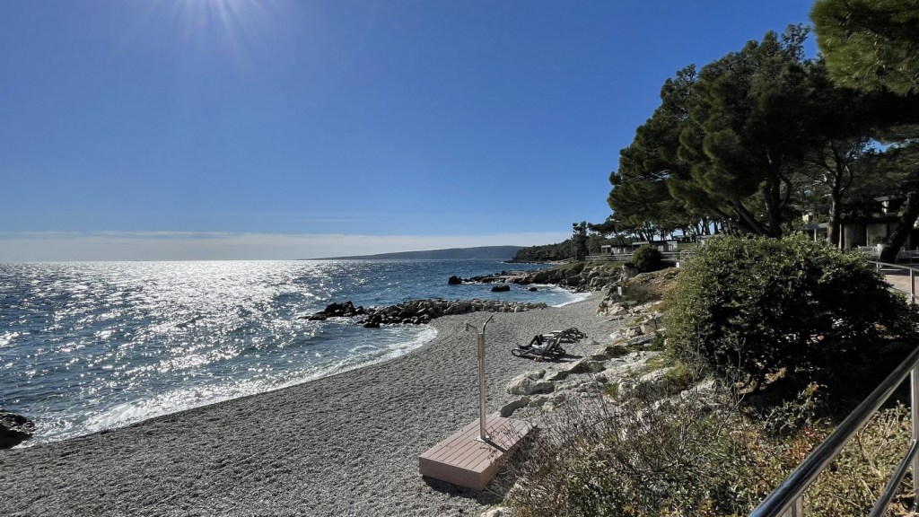 Die Strandpromenade windet sich an immer wieder entlang des Meeres, vorbei an verschiedenen Buchten. An einer gibt es zum Beispiel eine Zippline über den Beach Dražica.