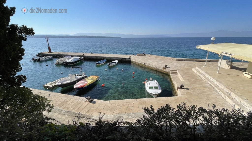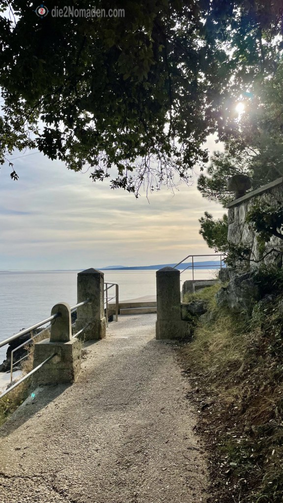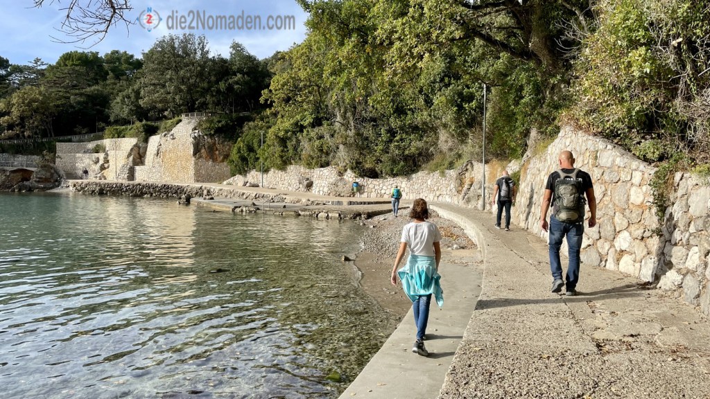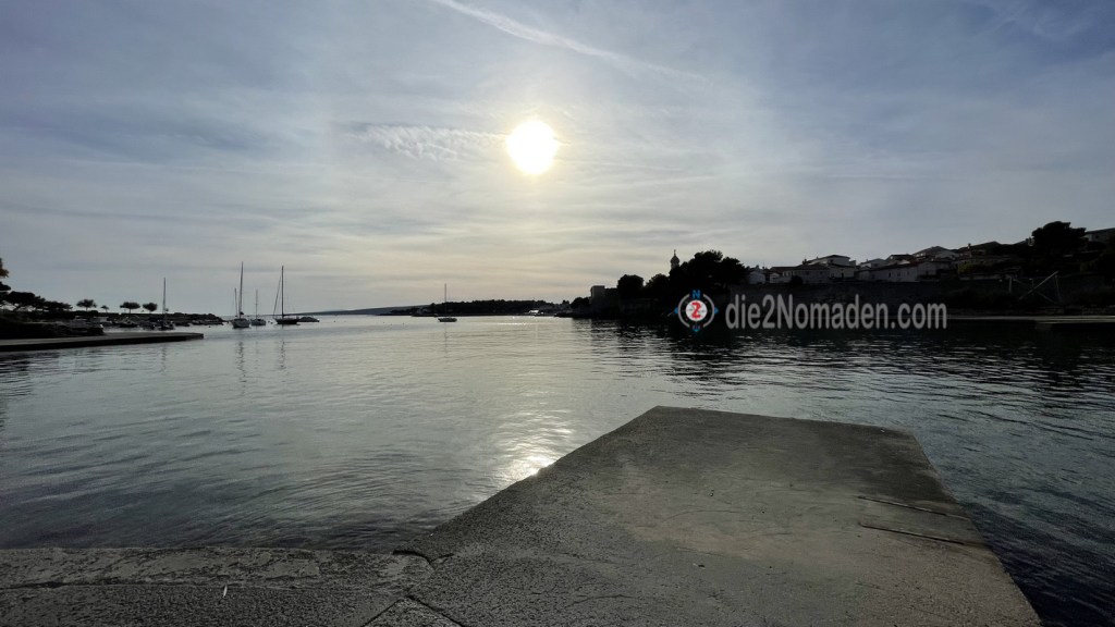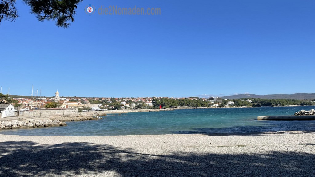 Wir erreichen KRK am östlichen Stadtende, beim im Winter geschlossenen KRK Premium Camping Resort. Ab hier spazieren wir am Lungomare von KRK.