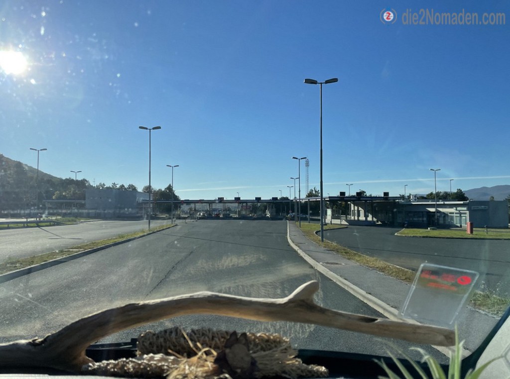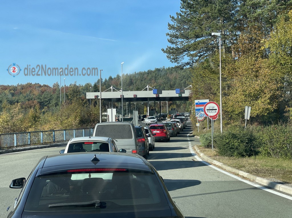 Der Grenzposten bei der Ausreise aus Slowenien ist unbesetzt. Auf kroatischer Seite gibt es ebenfalls nur eine Sichtkontrolle. Den Beamten interessiert weder Passkontrolle noch Kontrolle des Impfzertifikates.