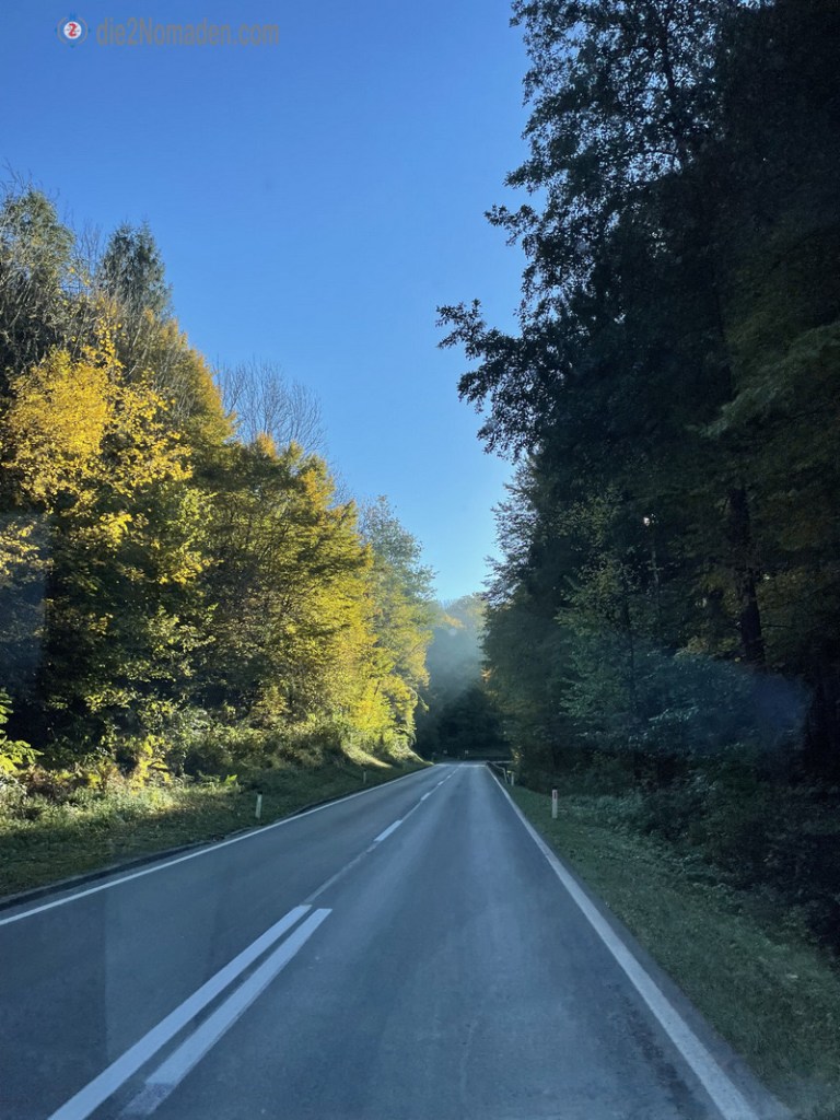 Bei der Ausreise aus Österreich sehen wir aus beiden Ländern keine Grenzbeamten. Also geht es ohne Kontrolle weiter.