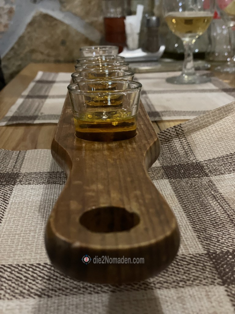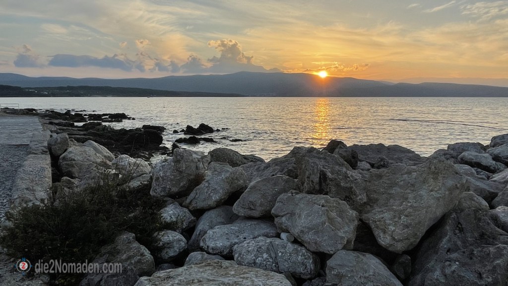 Mit vollgeschlagenem Bauch kehren wir in unser Camp zurück, kosten den kroatischen Sljivovica und beenden den schönen Tag bei gutem Wein aus Vrbnik.