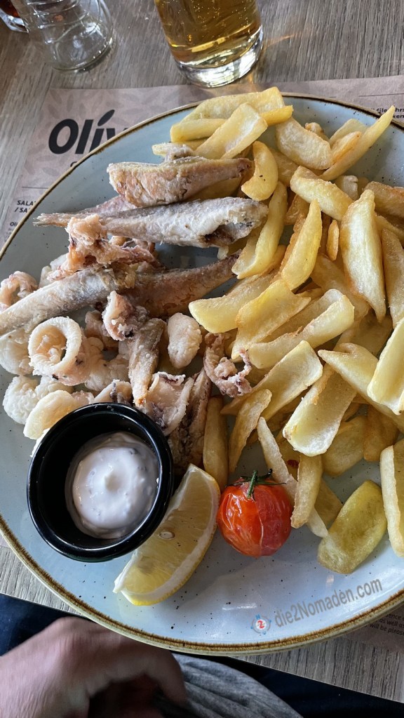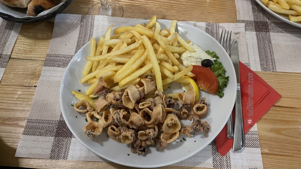 Wie bei jedem Urlaub, genießen wir am ersten Abend in einem guten Lokal die Früchte des Meeres der Adria. In diesem Fall gab es im Lokal Mali Nono gebratene Kalamari, Goldbrasse, Pizza di Mare usw.