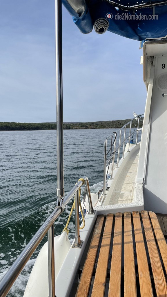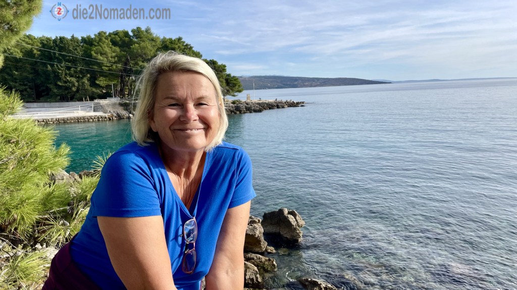 Während der letzten KM in Kroatien genießen wir die Sonne und den Blick auf das stahlblaue Meer.